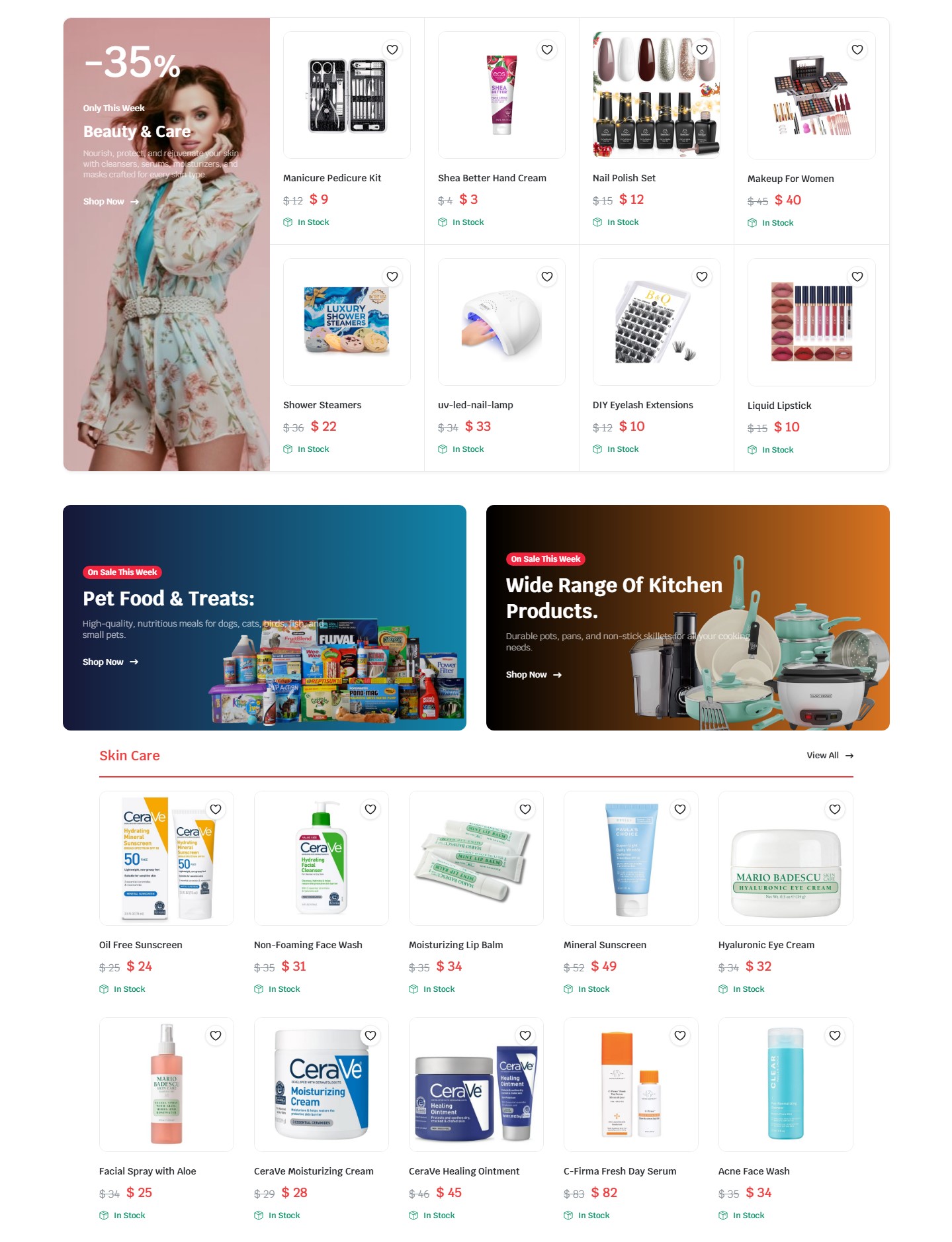 We used large, crisp images to help products “pop,” especially in skincare and home sections. The layout keeps things balanced — white space gives breathing room, while accent colors drive attention to add-to-cart and deals. Functionally, we added fast search with suggestions, cart persistence across sessions, and easy checkout with multiple payment options.